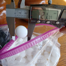 The stones are size 31 slate & shell. They have been cleaned per our Care Instructions. The 180 clamshells have been waxed and buffed - they measure 8.3-8.5mm. They are a variety of grades, and tend strongly towards Moon and Snow. The 181 slate stones are slightly thicker at 8.4-8.6mm, and have been washed and rinsed with distilled water.