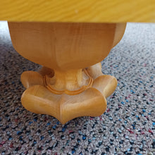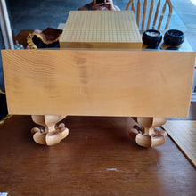 The board is in great shape, with only a few errant hits on the edges. Small dents on the surface could be lessened with a damp cloth and hot iron (see my Care instructions), but more will appear with rough play if you do not warn your opponent that Kaya is a soft wood. The board and legs could be waxed, so a 2oz tin of Monkey Wax will be included so that you can do this (if desired). The legs are stunning, with wide features and a sharply pointed double shoulder - this level of craftsmanship is very rare and beautiful.