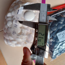 The stones are size 32 slate & shell. They have been cleaned per our Care Instructions. The 180 clamshells have been waxed and buffed - they measure 8.8mm. They are a variety of grades. The 181 slate stones are wider, and slightly thicker on average as well. They have been washed and rinsed with distilled water.