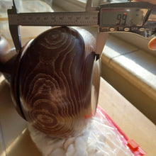 The bowls are chestnut with a pleasing orange/brown color. They catch the light very well. They have been scrubbed of their original finish and treated with Monkey Wax. At XXL size, they fit the stones comfortably with plenty of room to spare.