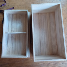 This lightweight wooden box helps protect valuable go bowls. The modern design ensures minimal exposure to moisture and light. It closes with a decorative purple ribbon. It includes no metal fasteners, instead it is held together with just wooden pegs and wood glue.