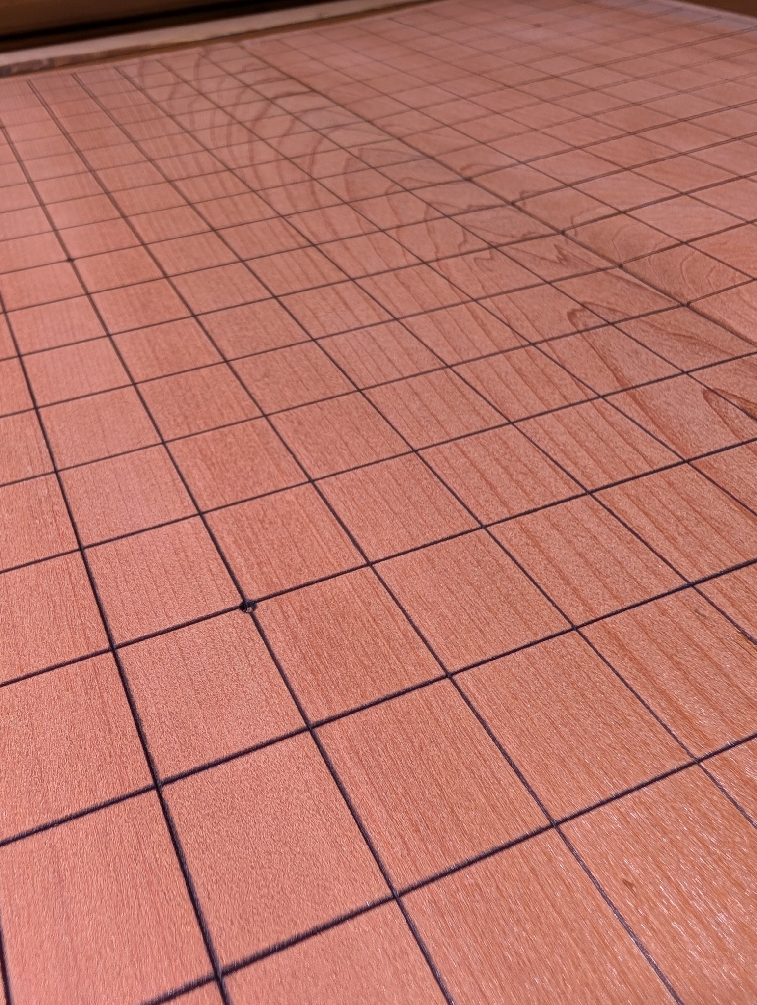 The wood was carefully selected Katsura, and is rift-sawn. Each half is made of a single piece. The top was sanded clean and a new grid was added with a laser.