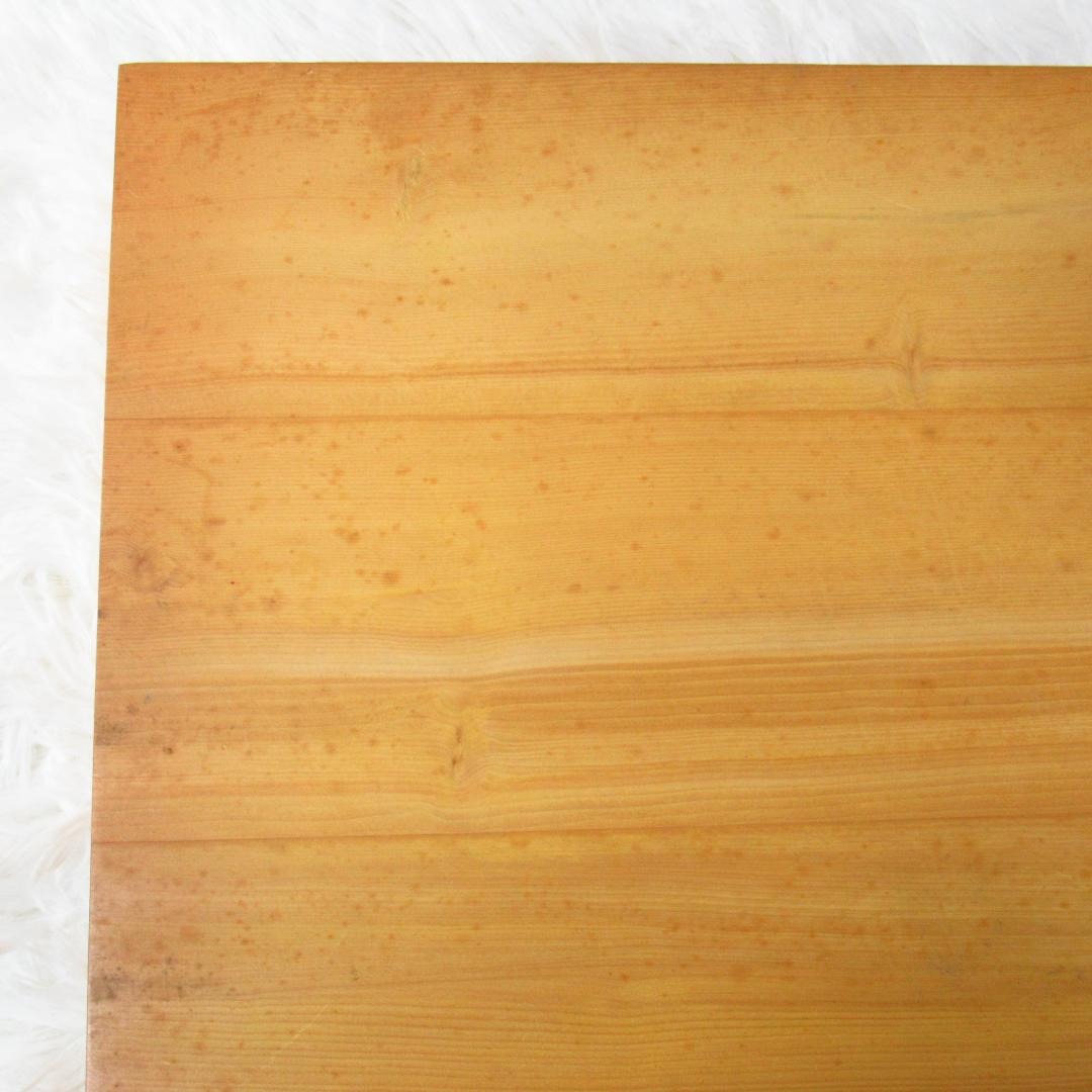 There are some stray marks. The lower edge of the board is darker, so this is a good sign that the board was stored for most of its life in a protective paulownia box. This is a vintage item, so other small defects may exist.
