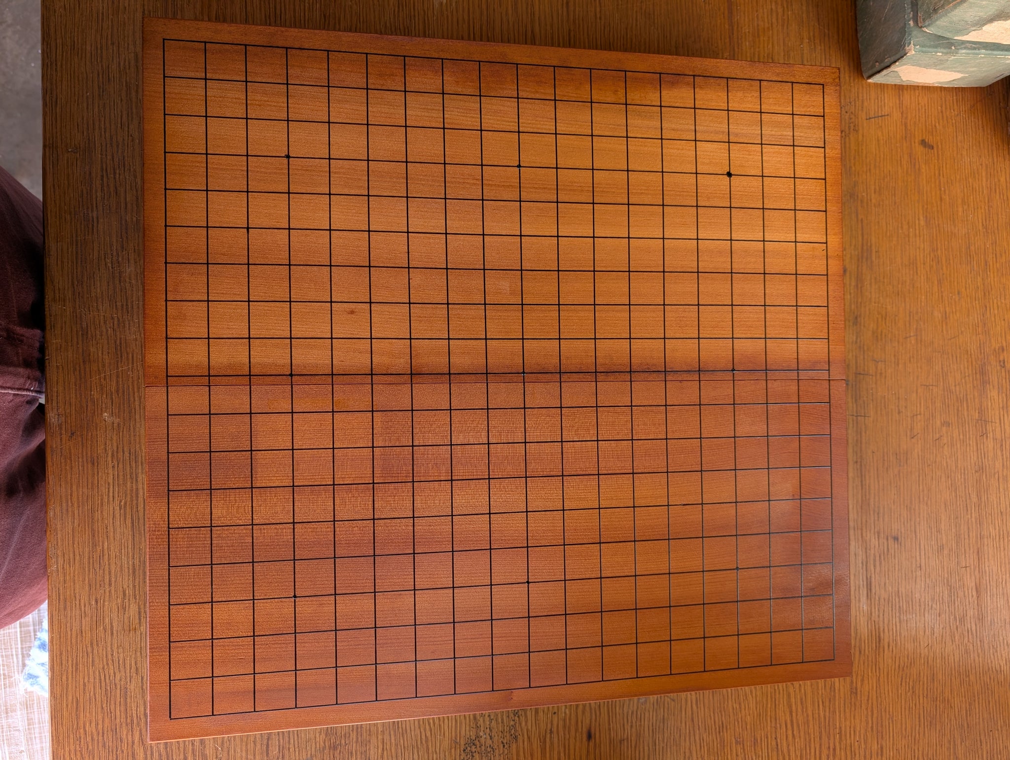 A folding board is a staple for most clubs and players 'on the go.' This Japanese board was shipped to Colorado for refurbishing - it was cleaned and then treated with Monkey Butter.  It comes with its original box, which is old and in need of some tape.