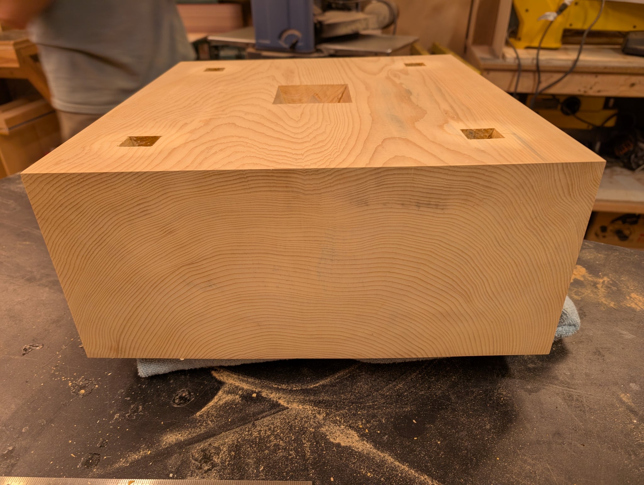 This awesome Kaya goban is 18cm thick, and stands 30cm tall with legs. It came to BadukClub from Akita, Japan, and is being refurbished in our Colorado workshop (work in progress).