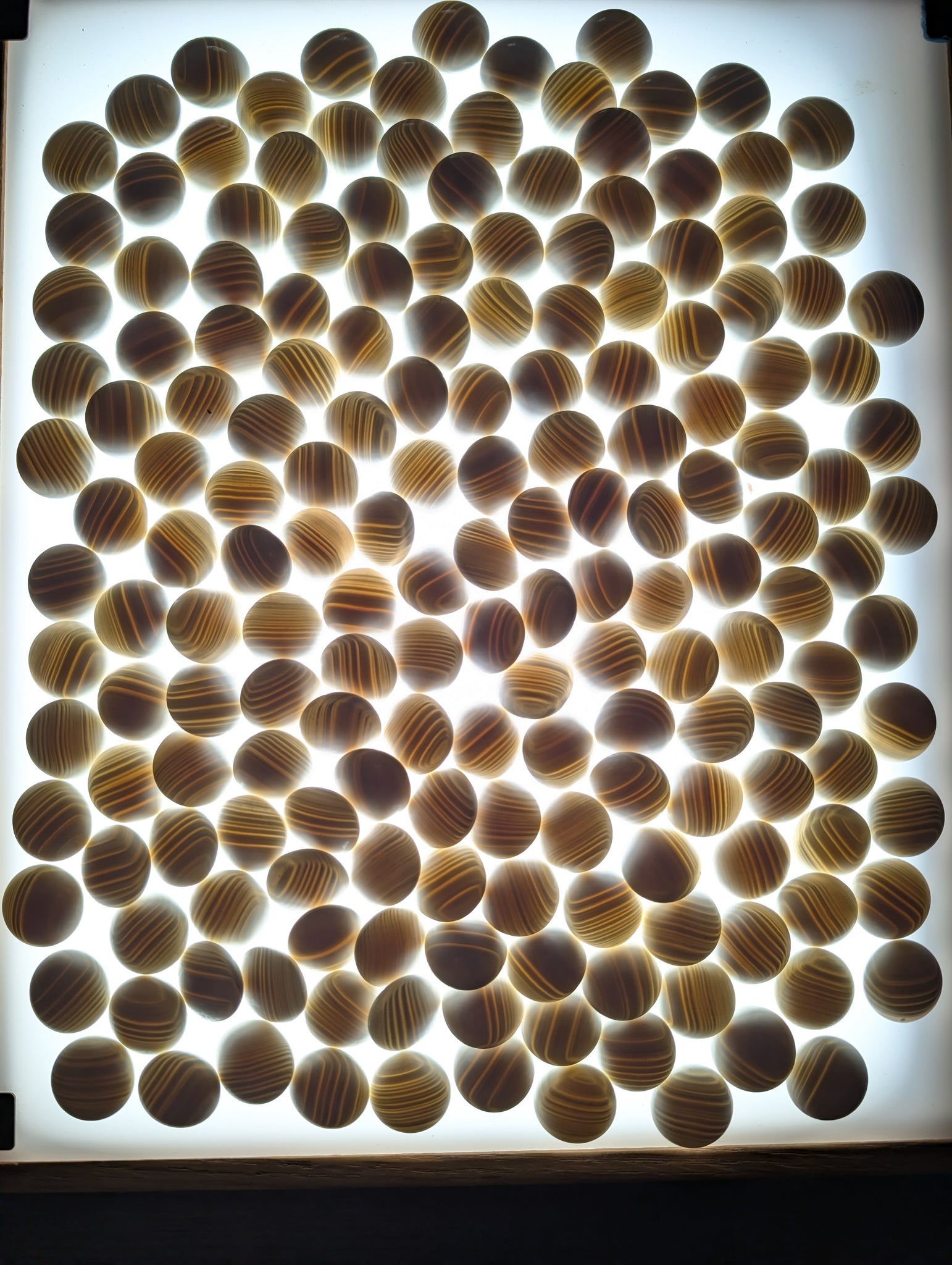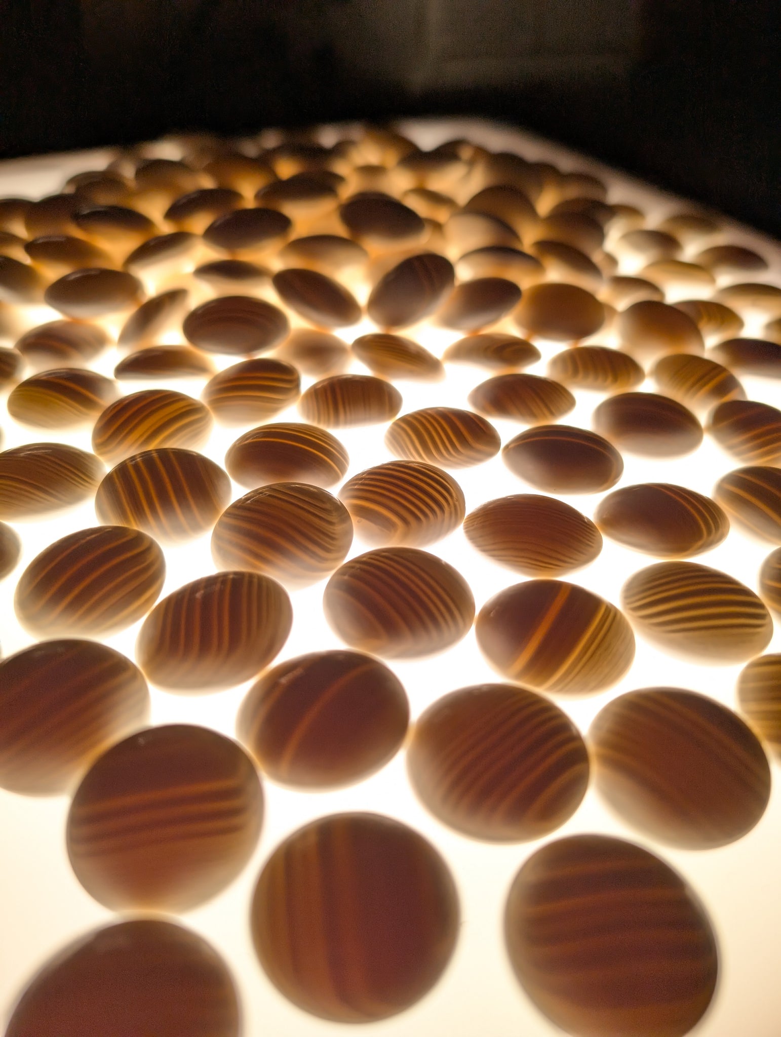 The 181 slate stones are slightly larger, to account for black's slimming effect. They were washed, and rinsed with distilled water.