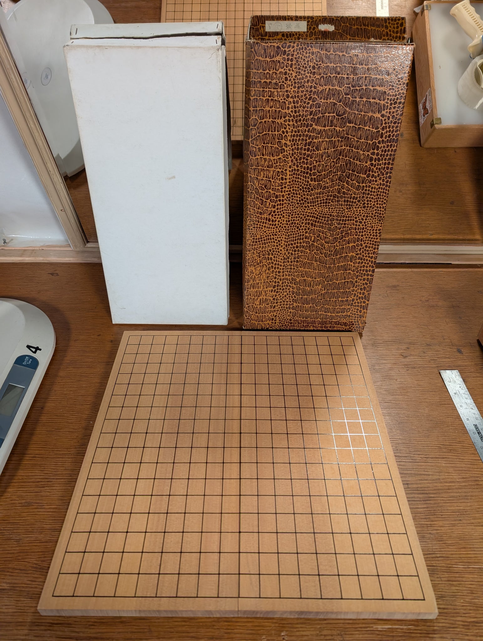 This Japanese board was shipped to Colorado for refurbishing. However, it looks to be in excellent condition so it has not been treated and we are selling it as-is. It is 1.8cm thick and comes with its original box.
