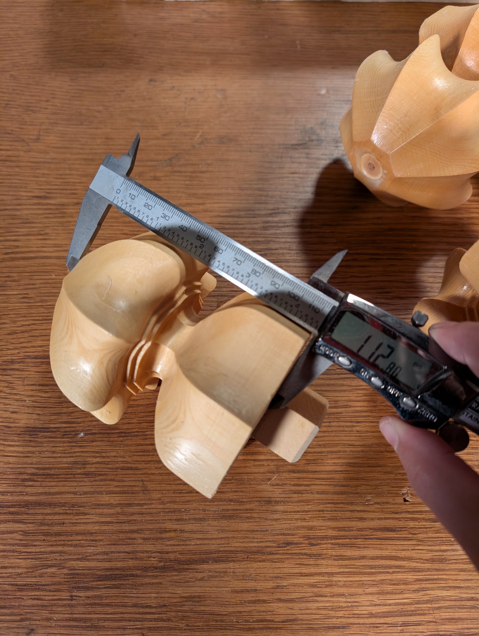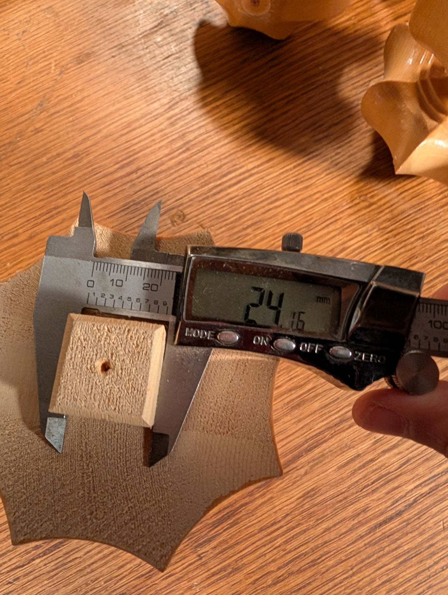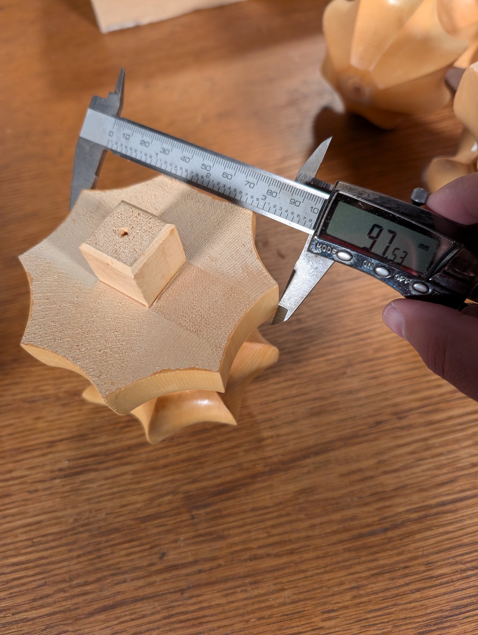 Dimensions: the leg stands 11.3cm tall (13.6cm including the tenon) and 9.8cm wide. The square tenon is roughly 2.4cm on each side.