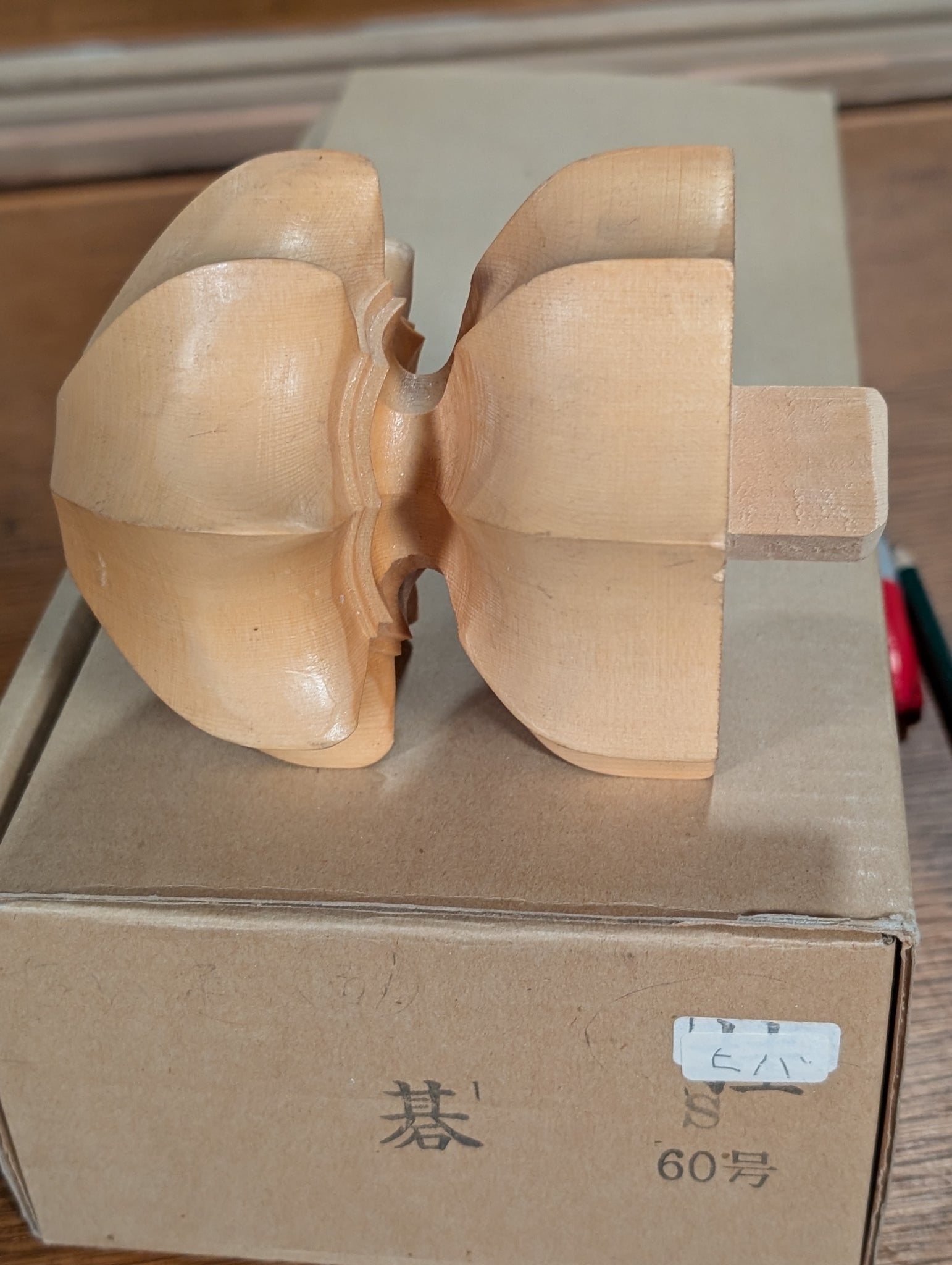 This is a single high-quality Hiba leg, a the unique kuchinashi (gardenia) shape, with the flourish of double shoulders in the central portion. It has a beautiful yellow tone and its original waxy finish.