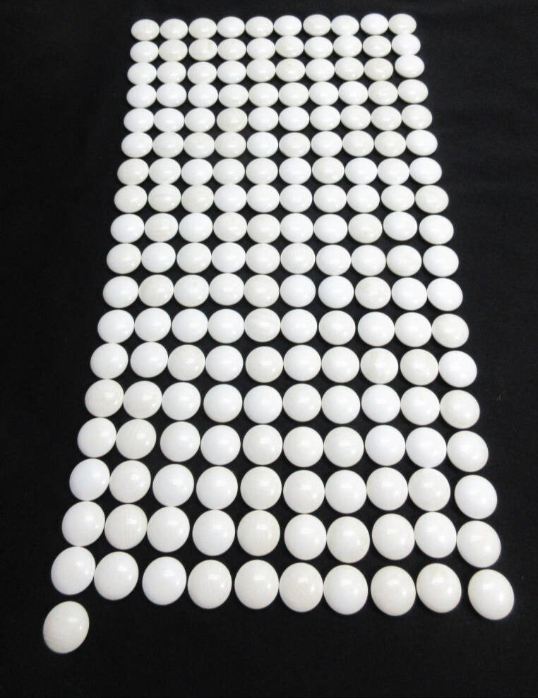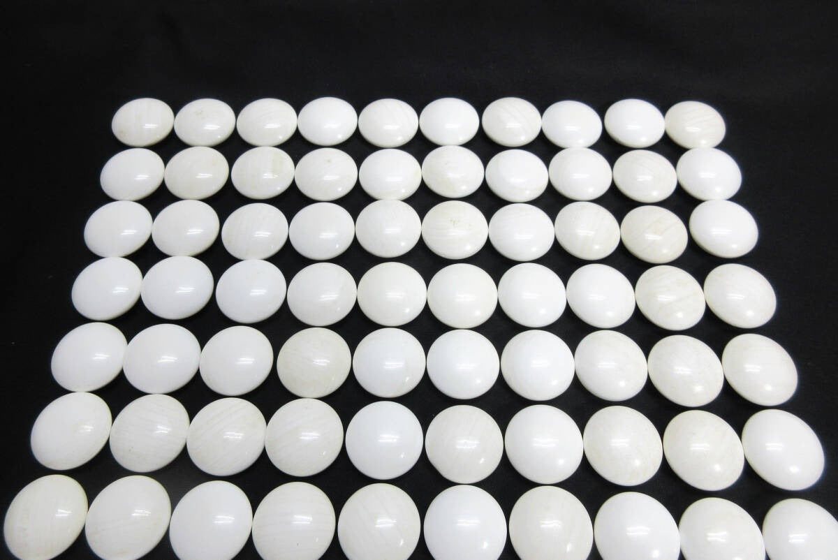 The go stones are size 35 slate and shell (almost 10mm thick). The white stones have nice lines and are likely moon or snow grade. It is a full set with 181 black and 180 white.